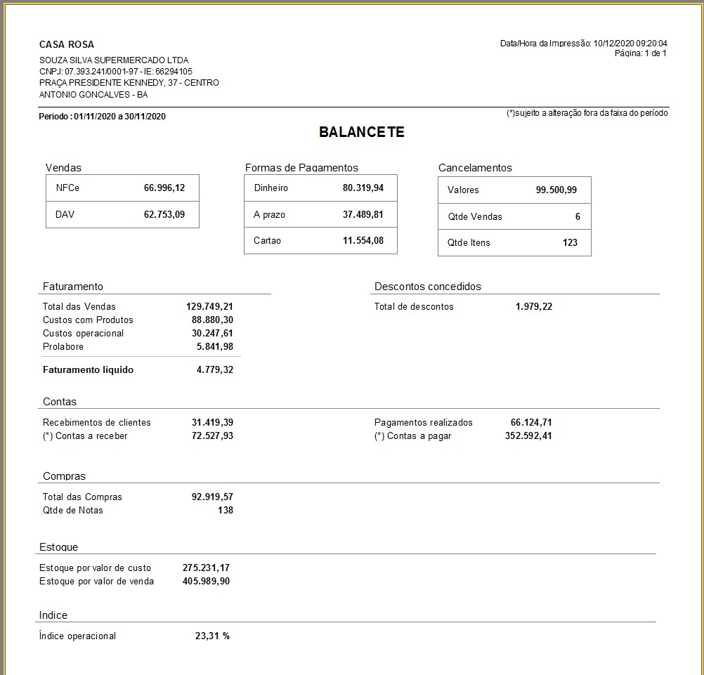 isso refletia no fechamento de caixa